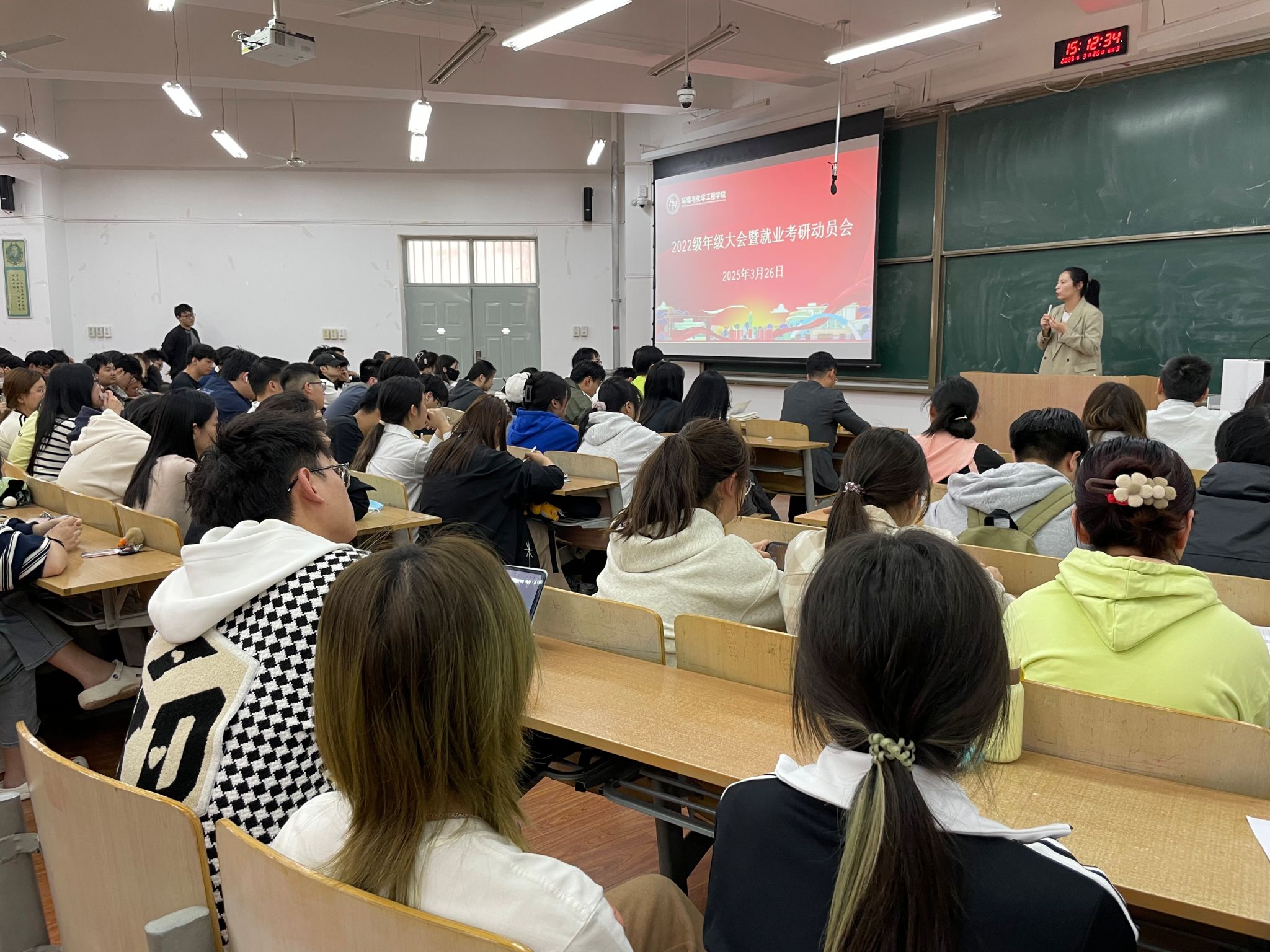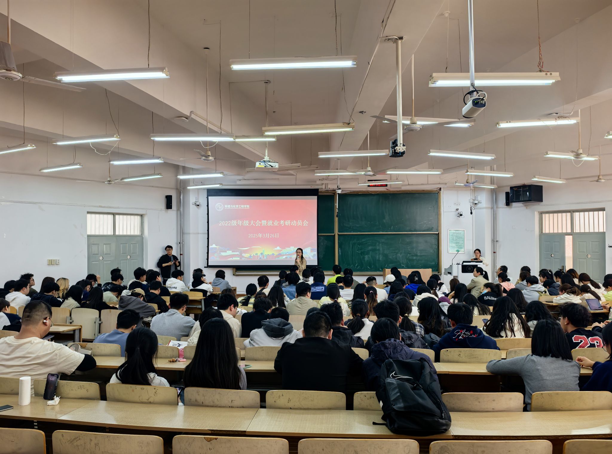 为增强学生安全意识、明确职业发展规划、激发考研备考动力,GimyTV 于3月26日下午在B栋教学楼233教室召开2022级年级大会暨考研动员大会。学院党委副书记林定武、学工办主任朱瑾、年级辅导员任子瑜及全体大三学生参加会议,会议由任子瑜主持。