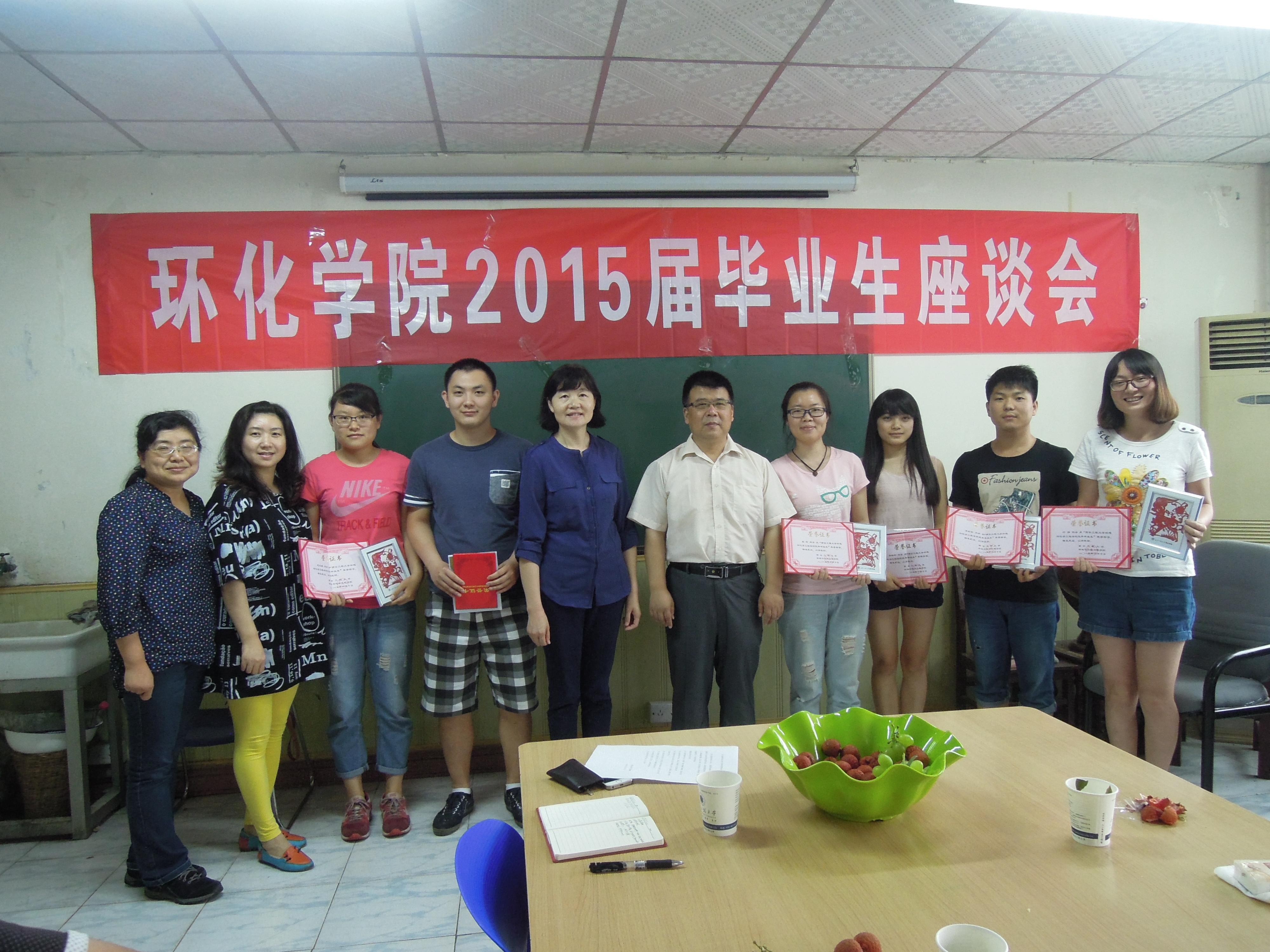 2015届毕业生座谈会,狄育慧、李建学等学院领导、各专业学科带头人、教研室主任、部分教师代表、学生辅导员和毕业生代表参加了座谈会,座谈会由环化党委副书记袁群主持。