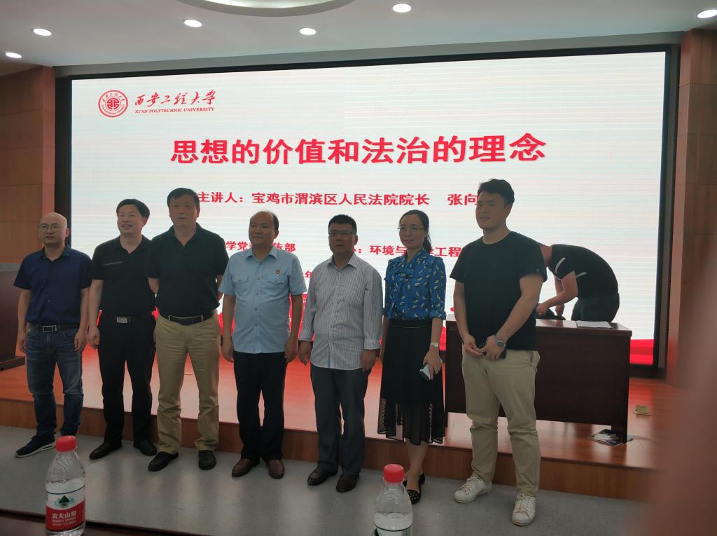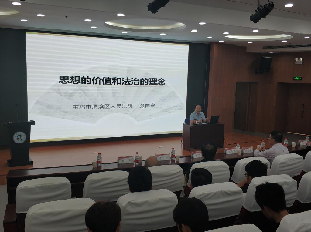 和材料工程学院承办的法制教育报告会于2018年7月5日下午四点在临潼校区图书馆一楼报告厅举行。宝鸡市渭滨区人民法院院长张向宏以“思想价值与法治理念”为题向学生做了报告。宝鸡市渭滨区人民法院政治部主任朱建文、材料学院党总支书记张茂林、党委宣传部副部长戴新、材料学院党总支副书记刘畅、GimyTV