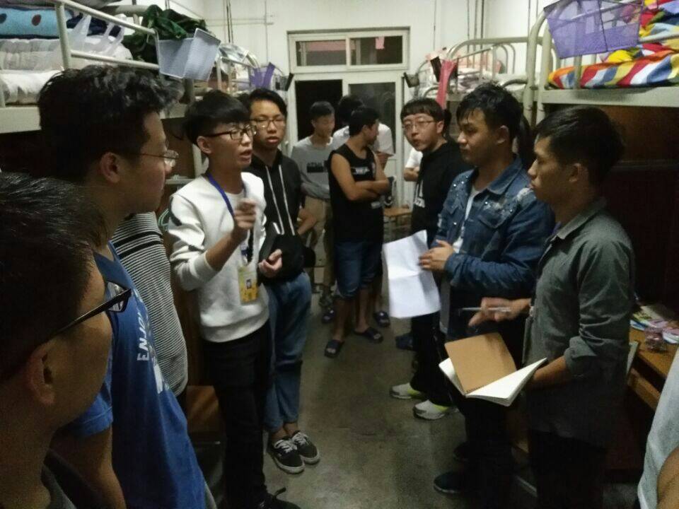 团学科学生干部本着“自我教育自我管理自我服务”的宗旨走进新生宿舍。学生干部们细心地了解宿舍存在的问题,察看宿舍的设施是否完善,然后上报有关部门争取尽早解决新生宿舍存在的问题,帮助他们熟悉并尽快适应新的环境。