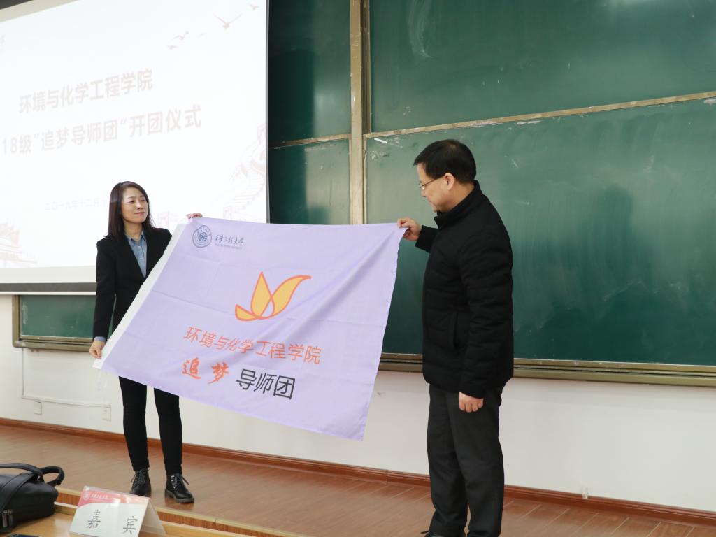 张洛红从“三全育人”的内涵入手介绍了学院“三全育人导师团”工作开展情况,强调“三全育人”是在主体、时间、空间上三维一体的教育,要始终坚持以学生为中心,充分调动广大学生的积极性、主动性,聚焦学生所需有针对性地开展学生指导工作。要充分发挥专业教师的育人主体作用,强化专业教育与学业指导,促进学生全面发展。希望各位导师与全体同学能够积极行动起来,扎实落实“三全育人”工作,努力营造学院良好的教风学风,助力学生成长成才。随后,张洛红为导师团授团旗。