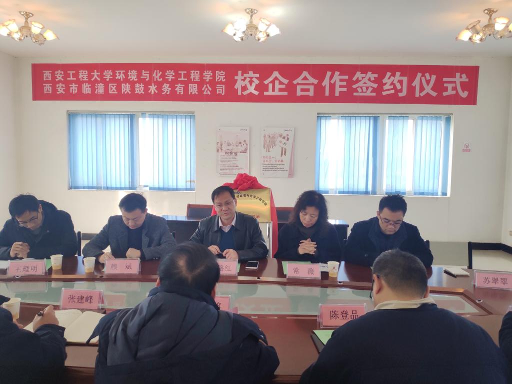 院长张洛红、副院长常薇、党委副书记赖斌、分析测试中心和环工系教师一行6人赴临潼区陕鼓水务有限公司签订战略合作框架协议。陕西鼓风机(集团)有限公司综合能源事业部总经理施小将、陕鼓水务有限公司执行董事张建峰、总经理陈登品以及各部门负责人出席签约仪式。仪式由陈登品主持。
