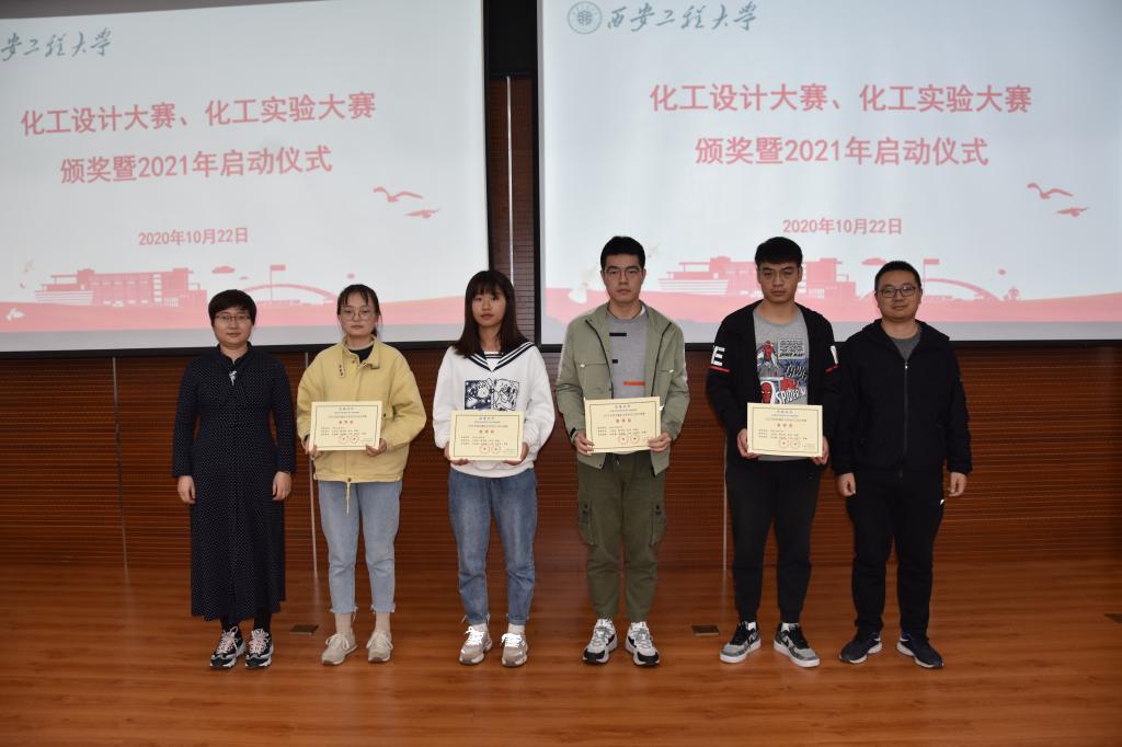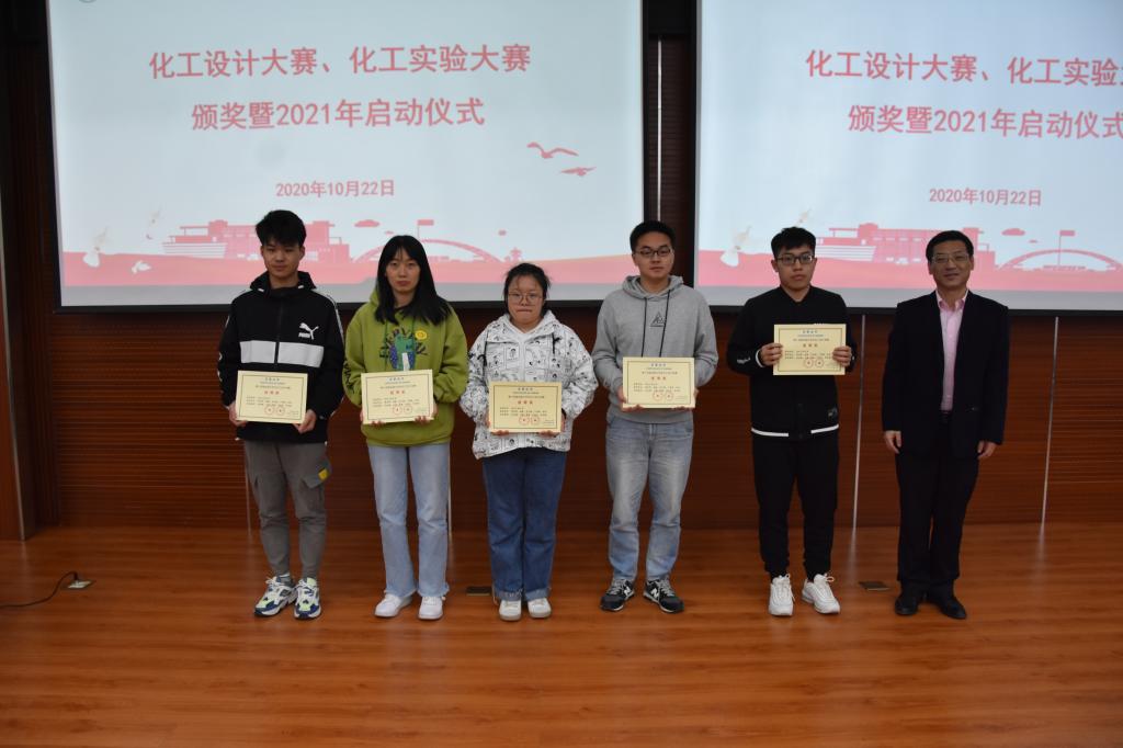 教务处副处长秦伟致辞,他对获奖人员及获奖团队表示肯定与祝贺,并鼓励同学们积极参与各项学科竞赛和创新大赛,将理论与实践有机结合,并提升自身创新思维和创新能力。副院长常薇宣布获奖名单,与会领导和老师为参赛队伍颁奖。赵亚梅老师分别从竞赛基本情况、参赛能力培养、参赛程序等方面对大赛进行了详细的介绍并展示了优秀获奖作品。获奖学生贾雨梦代表团队发言,他介绍了自己参与化工设计大赛的经历,通过大赛不仅能帮助同学们夯实理论知识,更能将理论与实践相结合,提升同学们的实践能力与团队协作精神。他鼓励学弟学妹们能够积极参与,并预祝大家在下一届化工设计大赛取得更加优异的成绩。