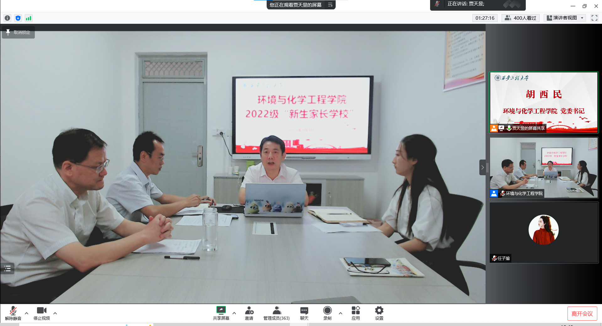 于9月9日上午9:30在临潼校区8号楼238会议室召开线上2022级本科新生家长学校活动。学院党委书记胡西民、院长张洛红全体辅导员以及360余名新生及家长参加了本次活动。活动由学院副书记林定武主持。