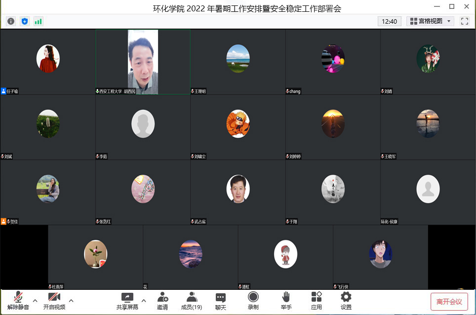 7月14日学校稳定安全工作会结束后,学院立即通过腾讯会议召开2022年暑期工作安排暨安全稳定工作线上部署会。学院党委书记胡西民、院长张洛红和党政班子全体成员,党委委员、工会主席,实验中心负责人,以及各系主任、各党支部书记、全体辅导员参加会议,会议由党委书记胡西民主持。