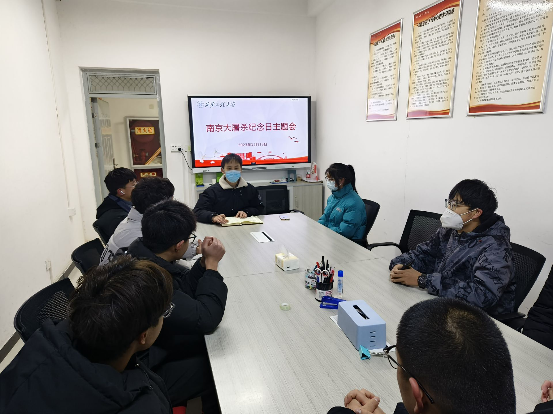 2023年12月13日,为了进一步强化青年学生的爱国主义思想意识,鼓励广大学生进一步坚定政治立场,牢记历史,勿忘国耻,树立远大革命理想和崇高人生信念,国防教育学院开展了“不忘国耻,祭奠‘南京大屠杀’”的主题班会。