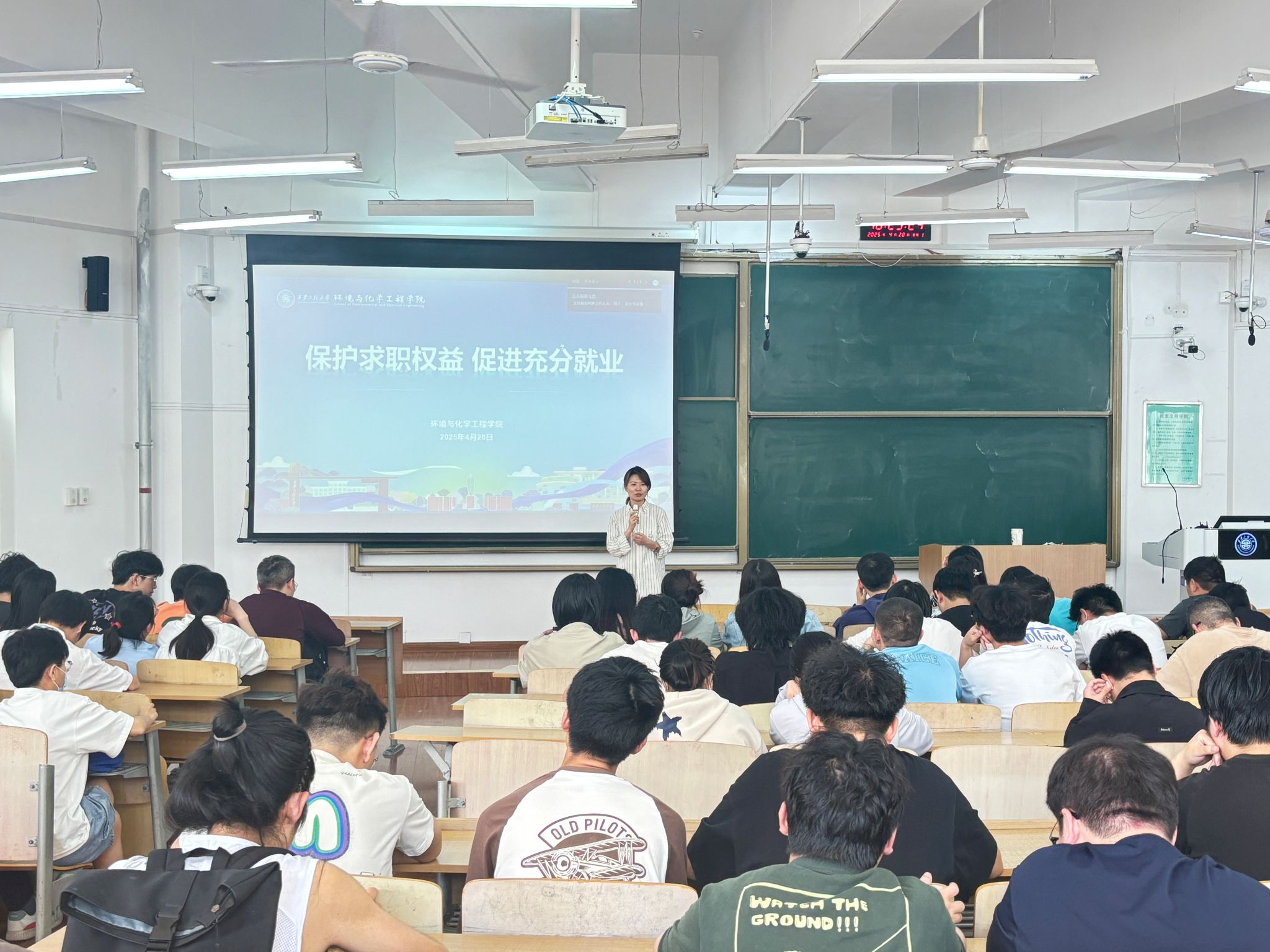 在临潼校区B栋教学楼233室召开“保护求职权益 促进充分就业”毕业生求职就业典型案例警示教育大会。会议通过案例剖析、法律解读等形式,为2024届毕业生敲响求职安全“警钟”,助力提升就业风险防范能力。学院学工办主任朱瑾、教务员耿倩、毕业生辅导员刘婧及毕业班学生一百余人参会。