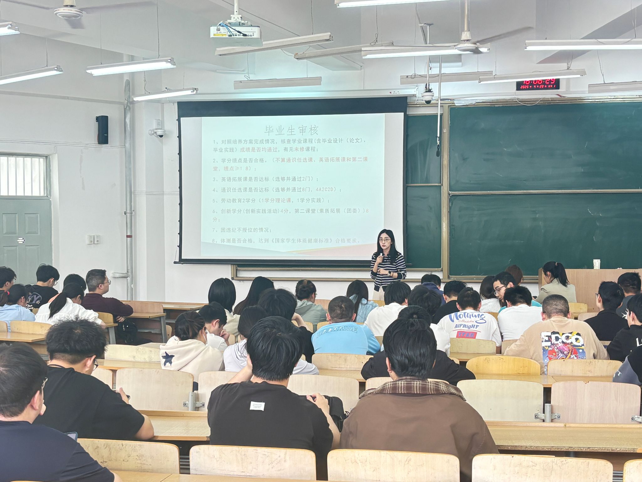 会上,教务员耿倩就毕业审查相关事项进行说明,毕业班辅导员就毕业生关心的西部计划、高校毕业生应征入伍等政策进行解读。接下来,学院将继续加强访企拓岗工作,努力挖掘就业岗位,为学生精准推送可靠招聘信息,全力护航毕业生走稳就业路。