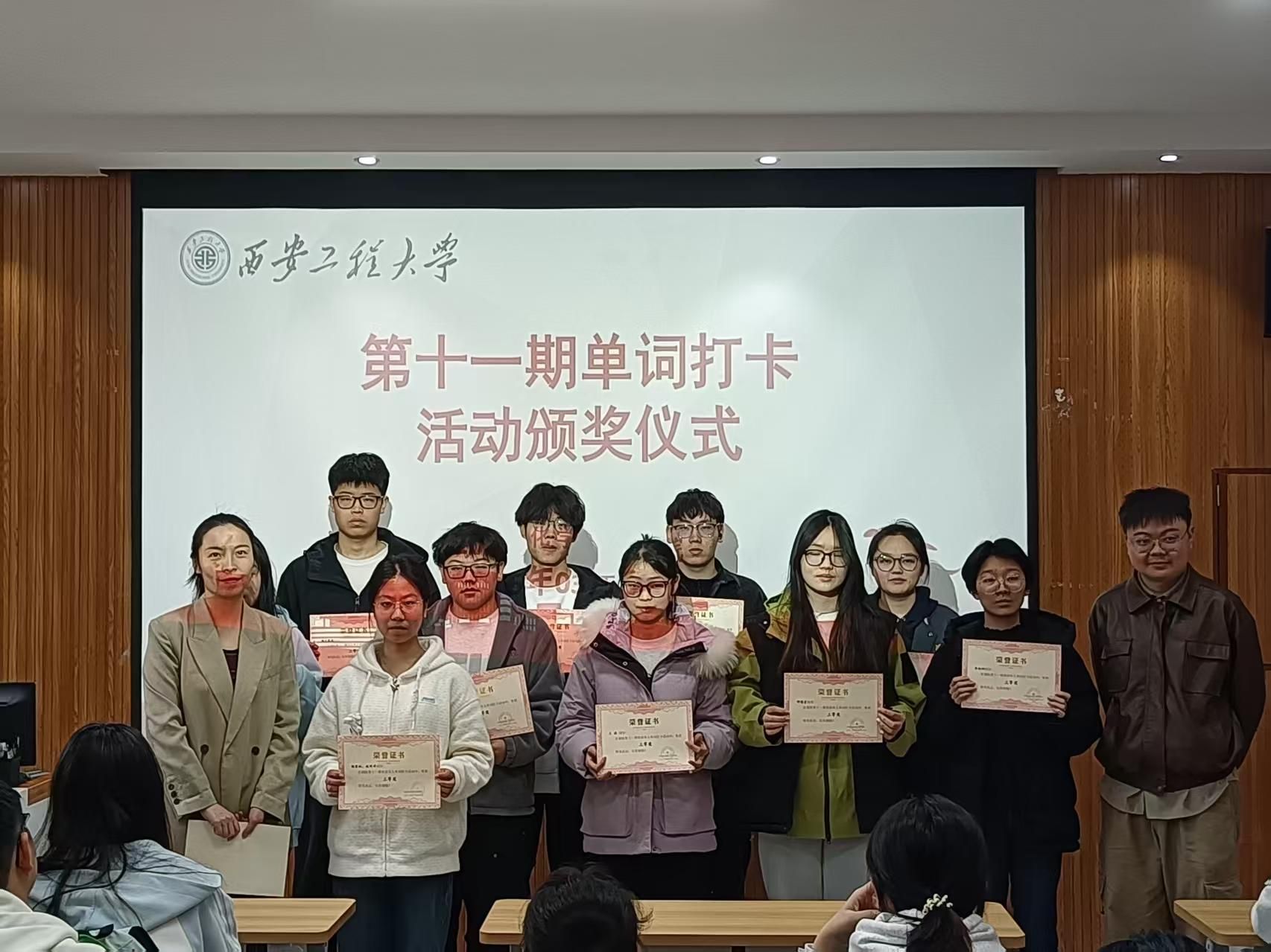第十一期单词打卡活动颁奖仪式顺利举行。学生工作办公室主任朱瑾、2025级辅导员吕国正出席仪式并为获奖学生颁奖。