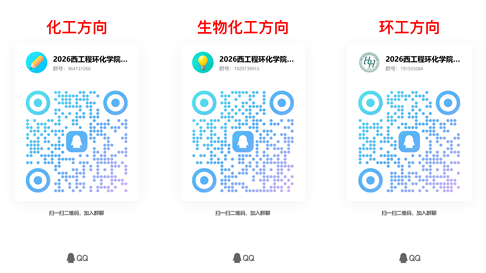 QQ群号:791555084(环工)、964131260(应用化学)、1029739915(生物化工)