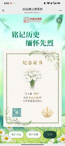 活动中,党员们登录中华英烈网、本地英烈纪念馆等线上平台,通过云端献花、虚拟鞠躬、撰写缅怀短文等形式,表达对革命先烈的崇高敬意与深切追思。一句句赤诚留言、一段段真挚寄语,汇聚成对英烈的深情追忆和传承英烈精神的坚定信念。同时,党员们主动转发线上祭扫链接,带动身边同学共同参与,积极传递绿色祭扫理念,推动英烈精神在青年群体中广泛传播。