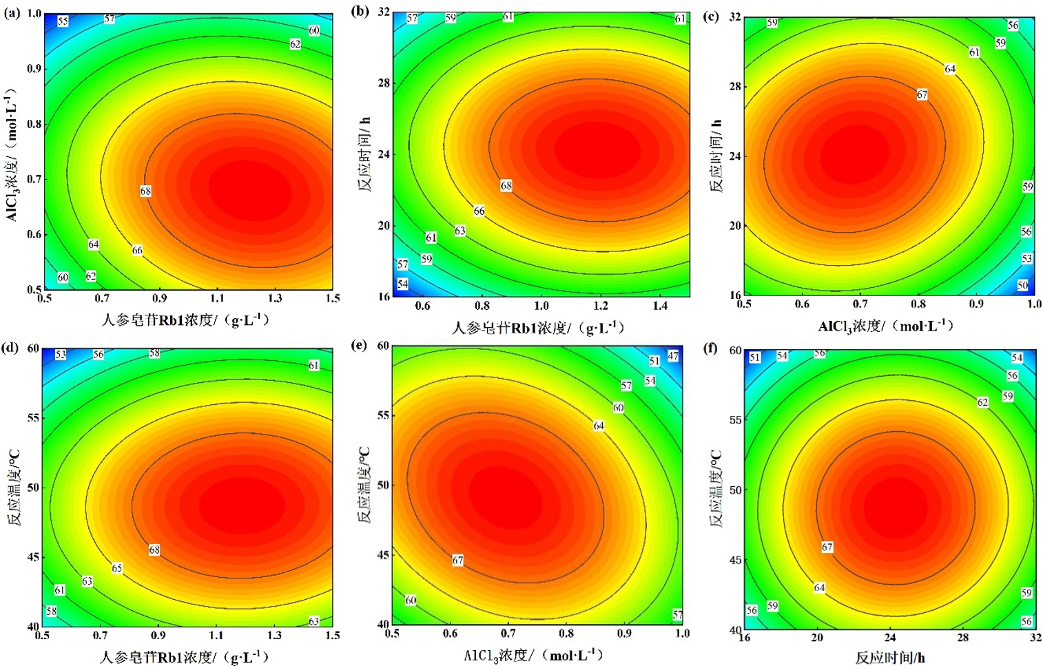 在绿色化学催化工艺开发与过程优化方面,课题组针对稀有人参皂苷转化过程中存在的反应条件苛刻及效率受限等问题,构建了基于金属离子催化的高效转化体系。通过筛选低成本金属离子Al3+催化剂并引入绿色溶剂体系,结合单因素实验与响应面优化方法,系统调控关键反应参数,建立了温和条件下的定向转化工艺。该研究从反应路径调控与催化机制层面入手,提升了目标产物生成的选择性与过程可控性,同时兼顾环境友好性与工业可行性,为稀有人参皂苷Rg5的规模化绿色制造提供了新思路。研究成果以“AlCl3催化制备稀有人参皂苷Rg5的工艺优化”为题发表于国内CSCD期刊《应用化工》,化学与工程技术专业2022级研究生高一平为第一作者,曹翠老师和孙先锋老师为共同通讯作者,GimyTV 为通讯单位。