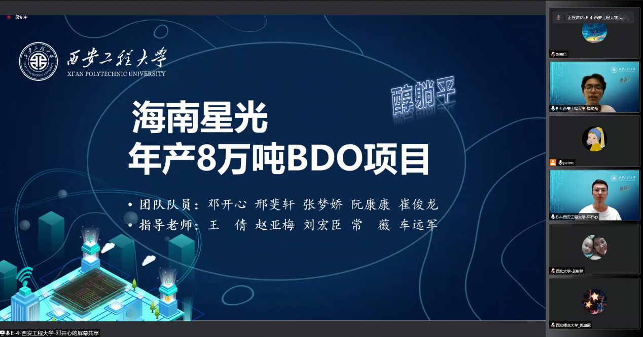 2022年8月2日,第十六届“天正设计杯”全国大学生化工设计竞赛西北赛区决赛在西北大学举行。大赛围绕“为某大型化工企业设计一座1,4-丁二醇生产分厂或为现有的1,4-丁二醇生产分厂设计技术改造方案”设计,我校参赛队在赵亚梅、王倩、刘宏臣、常薇、车远军、李亚楠以及霍锦华老师共同指导下,由邓开心、邢斐轩、张梦娇、阮康康、崔俊龙同学组成的“醇躺平”参赛队从西北赛区281支队中脱颖而出,进入第二轮全国赛代表队选拔的激烈比拼中,荣获全国“二等奖”和西北赛区“一等奖”的优异成绩。另外,由王耀伟、胡伟彬、李佳其、王永韬、张连帅同学组成的“醇狱”参赛队获得全国“三等奖”,由洪辰铭、狄世杰、陈丽、李琪和吕瑞展同学组成的“五等分的醇”参赛队获得西北赛区“三等奖”。