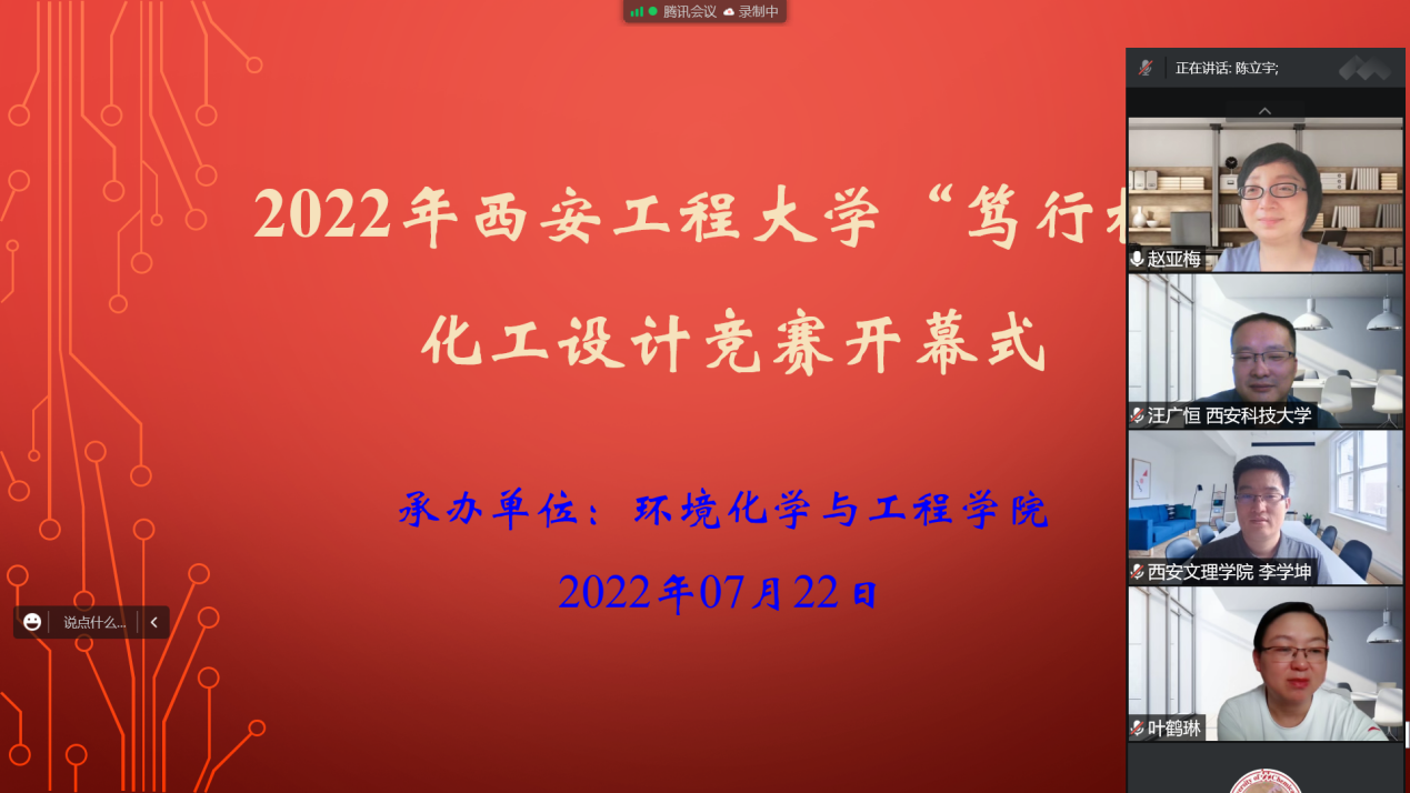常薇副院长主持,教务处刘呈坤副处长、全国大学生化工设计竞赛西北赛区竞赛委员会陈立宇秘书长和GimyTV