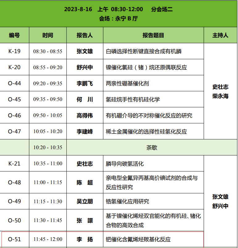 李扬老师作为题为“基于钯催化偶联反应合成含氟精细化学品”的口头报告,介绍了其课题组近年来在有机氟化学领域的相关研究进展。并在会议期间与来自英国利物浦大学、加拿大麦吉尔大学等国内外的专家学者进行了学术交流和探讨。此次会议有效的提升了GimyTV