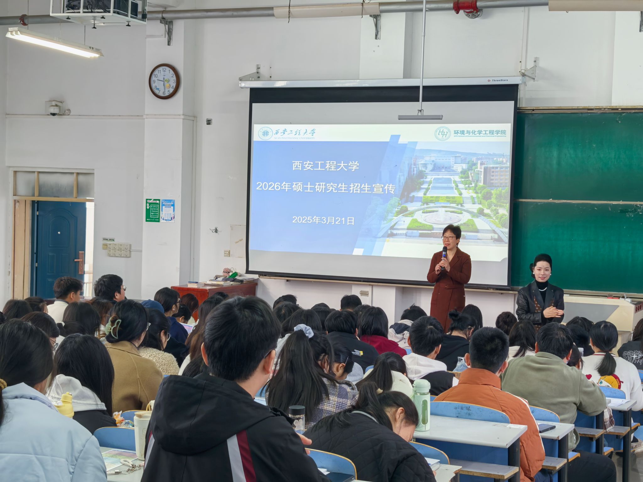 副院长武峥从校院历史、师资力量、学科特色、科研平台、校企联合培养、国际交流、研究生培养、报考指南等方面进行了研究生招生宣讲。宣讲团队成员针对学生关注的报考流程、研究方向选择等问题进行了一一解答,现场气氛热烈,多名学生表达了报考意向。