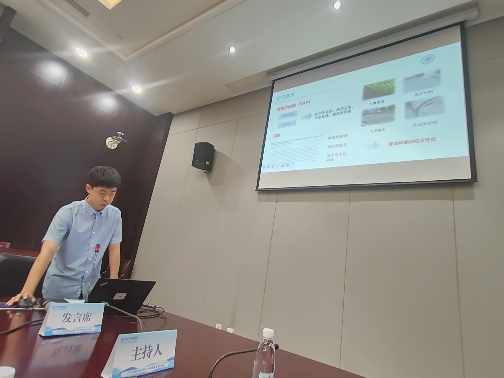 郭雅妮教授指导的研究生阴禹帆参加了此次会议,阴禹帆同学在农林废弃物综合利用分会场作了题为“花生壳纤维素-腐植酸基吸水树脂的制备及性能研究”的学术报告,汇报了花生壳废弃物回收利用现状和功能化应用技术的研究成果。会后,参会人员及代表围绕着农林废弃物的利用价值、利用途径和方法等方面进行了深入交流与讨论。