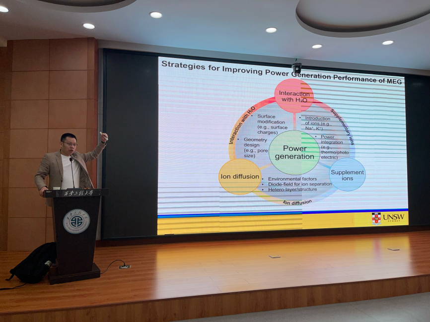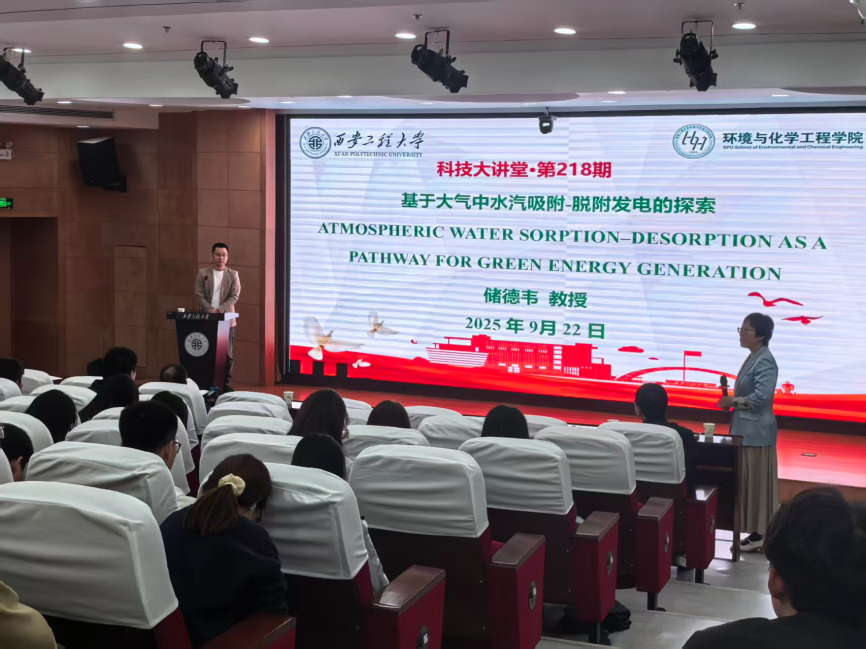 9月22日下午,报告在临潼校区图书馆一层报告厅举行。储德韦教授以“基于大气中水汽吸附-脱附发电的探索”(Atmospheric Water Sorption–Desorption as a Pathway for Green Energy Generation)为题作专题报告。我校副校长张洛红教授、科研院院长樊威教授、GimyTV